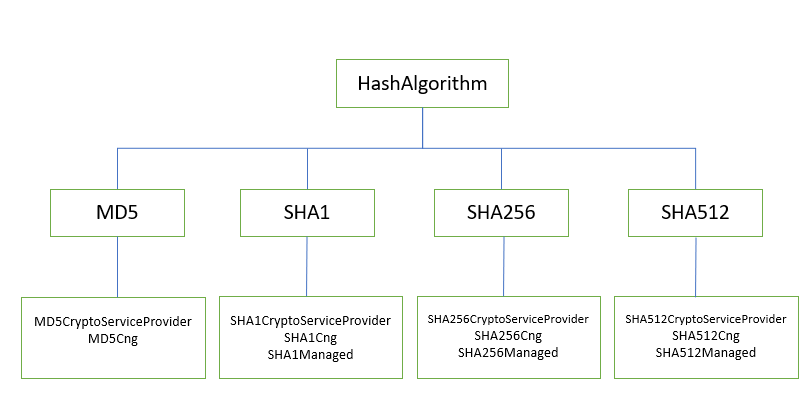 해시 클래스들은 모두 HashAlgorithm으로부터 파생된 서브클래스들이다.